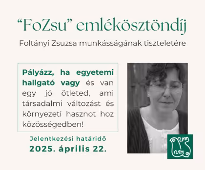 Idén második alkalommal hirdetjük meg a Foltányi Zsuzsa emléke és munkássága tiszteletére létrehozott emlékösztöndíjat azzal a céllal, hogy ösztönözzük és támogassuk azokat a kiváló egyetemi hallgatókat, akik a környezettudományokhoz kapcsolódó területeken tanulnak és aktív szerepet vállalnak a fenntarthatóság és a környezet védelmének népszerűsítésében.
